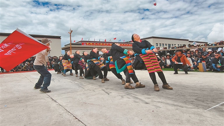 “達瑪”藏語意為“跑馬射箭”。每年的達瑪節(jié),賽馬都會吸引十里八鄉(xiāng)的人們前來觀賽。賽馬場上人頭攢動,隨著發(fā)令聲響,一匹匹駿馬如離弦之箭沖出起跑線,騎手俯身貼在馬背上,揚鞭馳騁,你追我趕,奮勇爭先。觀眾席上,人們隨著比賽節(jié)奏,時而激動,時而安靜,時而歡呼,時而嘆息。藏族阿媽次仁卓嘎難掩激動,她告訴記者,幾乎每年都會和家人來看賽馬。賽場上,選手們堅韌不拔、昂揚向上的精神風(fēng)貌讓人動容,也激勵著一代又一代英雄城兒女為祖國發(fā)展繁榮而不懈奮斗。